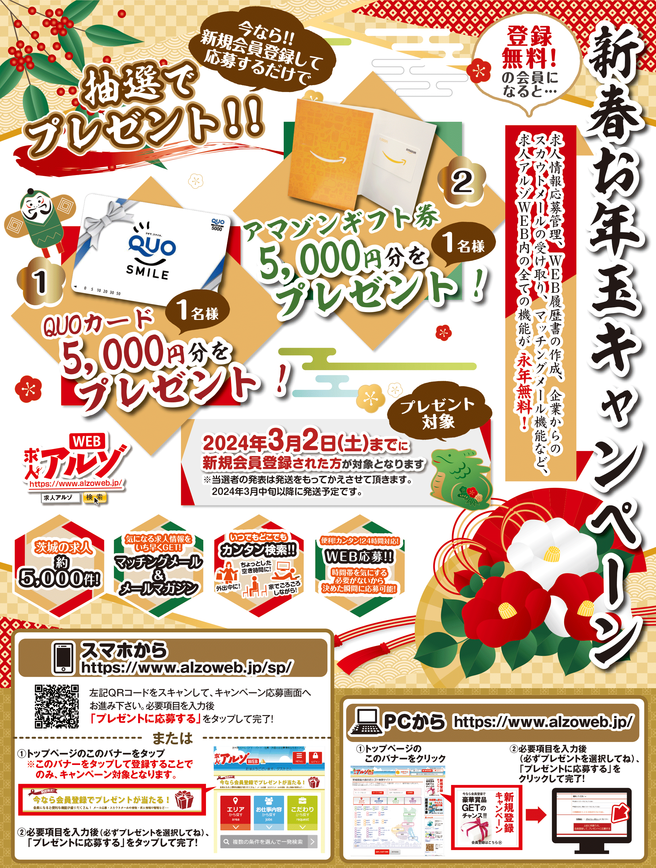 会員登録がお済みでない方でも、こちらで会員登録が可能です。また、会員登録を行うと、求人アルゾWEB内のすべての機能、