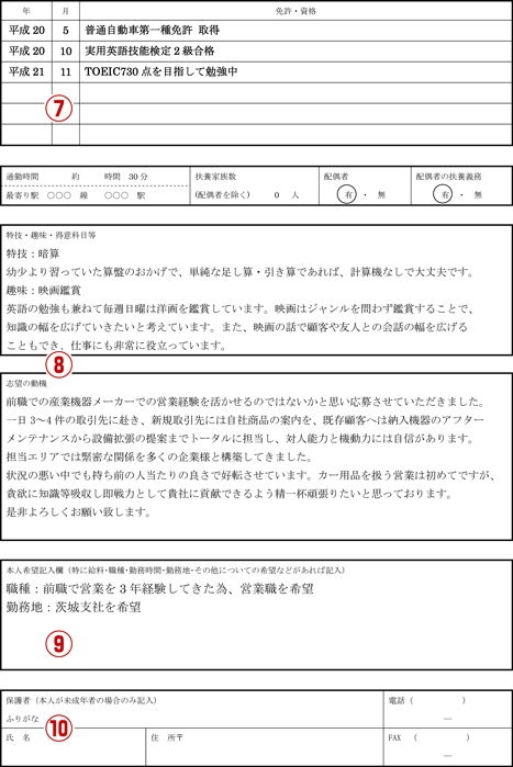 ⑧志望動機・趣味・特技など